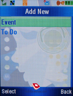 MotoMixer - original sound file editor that allows mixing the tracks. You can play with it from time to time; the results may come out rather unexpected and nice. However as the practice shows, these sound editors are nothing more than a toy for most of the users, only few of them take use tool seriously. Sounds - information about all sound files located in the phone's memory is stored here. You can check out their size, info and even listen to them. The players is similar to other Motorola's phones, everything is clear and easy to understand. The great advantage of this very player is playing back mp3's in background. You can form you own play lists by the way.