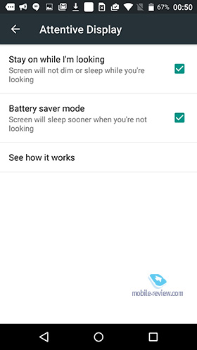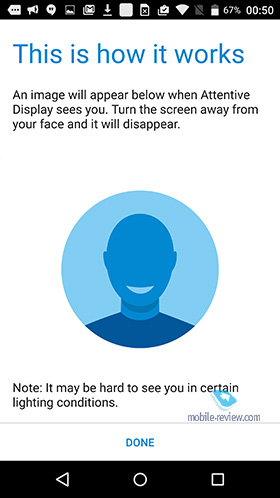 Теперь несколько слов об Activity Display, в прошлой модели на лицевой панели, помимо датчика освещенности, были также ИК-датчики, которые ощущали, что вы подносите руку к экрану, и включали на нем иконки, с помощью которых можно было быстро открыть приложение или перемотать музыку. Тут ровно то же самое, а вот на Moto X Play эти датчики убрали в силу бюджетности аппарата. В телефоне есть светодиодный индикатор, он не слишком назойливый, так что его работа вас не будет раздражать. В Motorola обработали корпус и компоненты аппарата водоотталкивающей жидкостью, он соответствует стандарту IP52. Топить нельзя, но сильный ливень он должен спокойно выдержать.