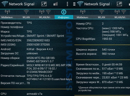 Обобщенные данные по устройству, приложение Network Signal Info. Оно же «организует» удобные виджеты сетевой активности на экране, а то меня после каждого обзора начинают спрашивать, что это и где взять.