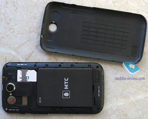 Размерами смартфон не пугает и лежит в руке хорошо. По сравнению со смартфоном с экраном 4 дюйма наш Smart Sprint длиннее, но даже меньше, чем на «лишние» полдюйма экрана. В ширину Smart Sprint почти не увеличился благодаря меньшей ширине полосок по краям экрана. Дизайн категории «никакой», разве что, заостренность нижней части для облегчения засовывания смартфона в карман. Отсутствие «хромированных» кнопок и полосок «под хром» лично я считаю плюсом, ни к чему такие украшательства на бюджетном аппарате. Спинка — матовый пластик, на ощупь почти soft touch. Отпечатки пальцев видны, однако тактильно задняя крышка приятнее, чем шуршащий под пальцами пластик с насечками. Логотип МТС присутствует скромных размеров и сильно в глаза не бросается. КонструкцияТрадиционная компоновка, не менее традиционное размещение элементов. Здесь во главе угла рациональность, и чего-либо радикально нового мы с вами вряд ли увидим. Разве что загадочная хромированная «шайба» рядом со светодиодной вспышкой. Высказывались предположения о вибромоторчике, оказалось не оно. Интрига! В остальном всё привычно и компактно, хорошо, что выкроили место для приличного аккумулятора 1 800 mAh.