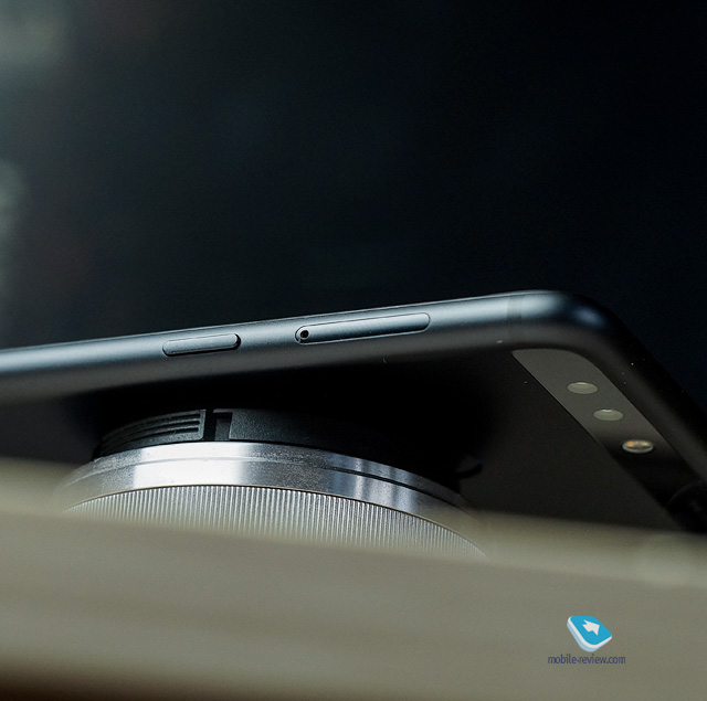 Справа – кнопка питания. Нажатие твердое, ход средний, пользоваться приятно. Чуть выше находятся металлические салазки для SIM-карт формата nano или одной SIM-карты и карты памяти microSD.