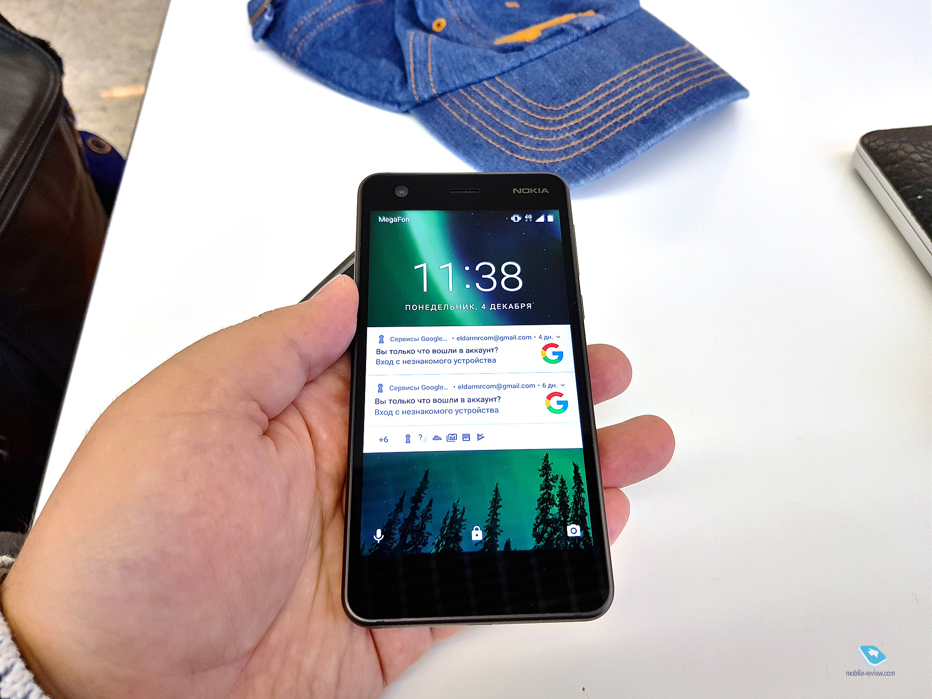ПозиционированиеВ линейке от Nokia модель Nokia 2 на данный момент самая простая, она открывает модельный ряд. Но назвать этот аппарат самым недорогим на рынке невозможно, в сегменте в 120 евро нет недостатка в предложениях, и в Nokia нашли беспроигрышный вариант, когда решили выбрать набор характеристик, хорошо зарекомендовавший себя в моделях других компаний, и добиться правильного соотношения цена/качество. Такие модели имеют большой, емкий аккумулятор и довольно типичные, минимальные характеристики. Для потребителя Nokia 2 – это аппарат с долгим временем работы, который ориентирован на тех, кто много звонит, мало играет в игры или вовсе в них не играет. Это отличный выбор для тех людей, кто хочет реже заряжать телефон, редко смотрит фильмы и не проводит время в интернете постоянно. То есть социальные сети, звонки – это основное использование аппарата. И в этом качестве Nokia 2 вполне оправдывает свое позиционирование. Причем в случае Nokia 2 мы также видим неплохое исполнение корпуса, что способно обеспечить продолжительное использование в течение нескольких лет. Но ожидать обновлений на новые версии Android можно только в теории (скорее всего, Android Go), так как аппаратные характеристики в модели скромны. Дизайн, размеры, управляющие элементыПо современным меркам, когда на рынке засилье смартфонов с диагональю в 5.5 дюйма и выше, Nokia 2 выглядит компактным аппаратом: размеры – 143.5х71.3х9.3 мм, вес – 161 грамм. Небольшой, хорошо лежащий в руке смартфон. Алюминиевая рама, снимающаяся задняя крышка с матовым покрытием – все это создает впечатление дорогого аппарата, каковым назвать эту модель от HMD Global нельзя. На мой взгляд, это удачный пример использования материалов, смартфон получился очень приятным для своей ценовой категории, часто тут просто предлагается пластиковый корпус, и выглядят такие модели дешево. Ничего подобного про Nokia 2 сказать нельзя.