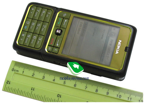 Корпус телефона достаточно маркий, этому способствует как глянцевая поверхность передней панели, так и задняя крышка. Она выполнена из мягкого пластика и быстро покрывается мелкими царапинами. Вид аппарата соответствует молодежным моделям среднего сегмента, у него нет преимуществ перед другими телефонами ни по качеству пластика, ни по ощущениям в руках (хотя боковые металлические вставки приятно холодят руку). Размер аппарата 103.8х50х19.8 мм; вес, заявленный производителем, 115 грамм. Измерения в нашей лаборатории показали вес, равный 130 граммам, карта памяти установлена при этом не была. Размеры телефона характерны для смартфонов на S60, например, тот же N70 имеет сходные габариты. Прямоугольность форм Nokia 3250 придает ему, быть может, дополнительной тяжеловесности. В руках аппарат ощущается как увесистый кирпичик.