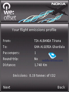 By the way, I stumbled upon two new feats in the Applications menu – this time around, they have much to do with ecology and ever so popular “green” movement. To be honest, I couldn’t figure out what the former app did, but the other one estimates how much CO2 you’ve generated with your activities. WE:Offset offers the user to calculate the damage he did to the environment and transfer some amount of money as a compensation to a special foundation. For example, a 1700-kilometer flight results in a 2 Euro bill or so. Other than that, the 5630 XpressMusic is a standard S60 fare.