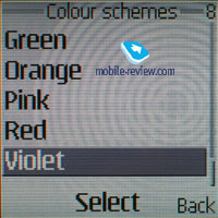 A coupled volume control button is on the left-side surface it is not very tight and is easy to work with. On the opposite side a separate key is responsible for Push to Talk. An On/Off button is traditionally on the top end and it also switches profiles in the standby mode. The key is of plastic and easy to work with due to its size and accidental pressures are excluded. A charger connector is on the bottom end and Pop-Port is also there. A full-functional IrDA is on the side surface. No other means of communication besides the IrDA and a cable are provided. The 65K TFT screen is similar to the one in Nokia 6230. The resolution is 128x128 pixels (27.5x27.5 mm). Preset schemes show the screen possibilities not fully and you can see them having installed own images. The screen fades in the sun and mostly because of its size information may be read.