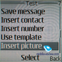 Assessing the whole comfort of the phone book it is possible to say that it is average. On the one hand, there are a lot of fields in it, on the other hand its input capabilities are more convenient for working with a PC and not for the phone. I'd like to stress that the phone book in general is typical for the devices by Nokia and there are no any principal changes that means improvements. The widest possibilities of the phone book are represented in the phones by Siemens, and then follow the devices by Sony Ericsson and only then Nokia. Messages. The device supports Nokia's standard Smart Messaging that allows sending and receiving melodies and simple black-and-white pictures from the compatible phones. Also the same standard is supported by Samsung, LG and some new devices by Motorola. There are up to 10 graphical templates in the internal memory specially for such messages. Unfortunately, the company's standard limits users because the alternative EMS standard, which is spread wider today, allows not only to send melodies and pictures but also format texts. ![]()