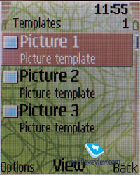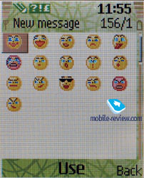 Each contact is available for assigning to any group created by a user. You can keep a name, a call melody and a picture for a group. Fast dialing for 8 numbers is possible. The first letters of the name are used for search. Both contacts from the internal memory and SIM card are shown, besides you can select only one source to take contacts from. The realization of the Photo ID function remained the same as in other company models. As we have already told, the external screen shows a tiny photo, with a hard to make out image. The internal screen has the situation a bit improved, and shows photos on 1/3 of the display. Messages. The device has a support for Nokia Smart Messaging and that allows sending and receiving melodies and plain black and white pictures from compatible devices. Phones by Samsung, LG and some new devices by Motorola support the standard besides Nokia. Up to 10 graphical templates are preset for such messages. Unfortunately the company standard limits the users because an alternative EMS standard is spread wider today and allows not only send and receive melodies and pictures but also format texts. Besides there is a set of 17 smiles and 11 text templates. Flash message that you can also create will only appear on the receiver's screen and won't save in the phone memory or SIM. Also you can use a chat function, then all the messages are shown on the one screen.