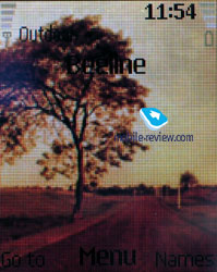 In the standby mode you'll see an operator's name, selected profile, clock, signal level and a charge level on the screen. When listening to the radio, you can see the name of the radio station (if it was saved) and the frequency. At an incoming call, either a caller's name or a phone number is shown; however, a picture appears if it was assigned to the contact. A picture bound to a contact is shown as a thumbnail on the bottom of the screen. Much of your imagination is required to make anything on it.