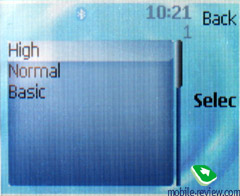 Гибкость настроек аппарата заслуживает уважения, на данный момент это одна из лучших реализаций интерфейса. В частности, вы можете выбрать Active Standby, традиционное отображение с быстрым доступом, назначенным навигационной клавише, и функцией GoTo (левая софт-клавиша). Главное меню имеет два различных представления – список (4 пункта главного меню на экране), матрица (9 иконок на экране). В старших моделях также присутствует два дополнительных вида - матрица с подписями пунктов (9 иконок на экране), закладки (list, grid, grid with labels, tab). Здесь их нет, так как разрешение экрана не позволяет реализовать такое отображение.
