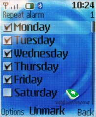 ![]() ![]() Органайзер. Вы можете внести в память от 100 до 250 записей, все зависит от их длины, есть автоматическое удаление старых записей (по признаку времени). Просмотреть календарь можно за месяц, неделю с разбивкой по часам, есть быстрый переход на введенную дату. Поддерживается ввод до 5 различных типов событий (встреча, звонок, день рождения, напоминание, памятка), для каждого события можно выставить предупреждение, события могут быть повторяющимися. При просмотре календаря за месяц для выбранного дня в нижней строке отображается до трех текущих событий. ![]()