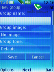 There are no preset groups available in this phone, thus you’ll have to create them yourself. The great advantage of this model is that you can create up 25 contact groups. Each of them can have personal tune and image set. The photo, bound up with a certain group member entry, has the highest priority and will be displayed instead of the picture applied to the group. One entry can be a member of various groups.