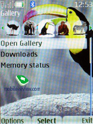 At that it’s important to stress that several applications can be set up in a different way and that’s not prohibited. A good example of that is the standard eMail client, which retains more settings than Configurations item does. It’s worth repeating that such settings depositary proves to be very fetching and is more likely to become widely adopted in the future. Gallery. The folders with various files are stocked here - all of them have titles matching their contents. You can view the folders as a list, list with labels or as icons. Any multimedia file, including video can be viewed in full-screen (horizontal lay-out). All data received via bluetooth is stored in “Received” folder, and in case the phone cannot provide enough memory, get redirected to memory card automatically. There are no caps on size of received files, they can even take up more than phone’s available memory (the earlier models could not handle such incoming files).