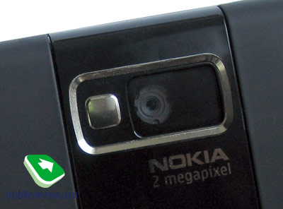 The rear panel would’ve been completely bald if camera lens and a small-sized mirror weren’t there. The camera module itself is a 2 Mpix CMOS-based one, which is quite typical for the company. The silver edging around the lens is made of plastic, exposed to wear and tear, in other words it will get scratched and soiled in no time. The glossy framing is also a magnet for various scratches and other kinds of mechanical damage.