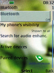 When we attempted to listen to music at full blast (in headphones), the 6233 passed the muster with the result of 9.5 hours – for radio the lifetime will be pretty much the same. The handset charges from empty to full in approximately 2.5 hours. Taking account of this handset’s spec sheet and comparing the obtained results with its rivals, I conclude that two days is quite standard lifetime. The display at that isn’t power hungry, so turning the screen off while in standby mode will give you 5-6 percent more time at best. Nokia 6233’s software featuresThe handset comes along with a 64 Mb memory card, which allows the manufacturer to claim 70 Mb of available storage – indeed, all you need to do is to open the box and plug the memory card in. However there are some hidden dangers in this – for some markets the bundled card already contains pre-installed content, for example games and useful apps, while for the other ones (including Russia) it is completely wiped. Installing basic applications found on the memory card isn’t a big deal in case you have Internet access. So in a nutshell, all you have initially is 6 Mb of manageable memory, which is quite little for modern handsets. Unlike the previous models, data received via Bluetooth and Infrared get stored in the place which has more free memory, at that even big files, taking up more memory than the phone can offer, are moved to “Received” folder on the memory card. Bluetooth. Everything said about Nokia 6131 holds true for the 6233 – support for A2DP profile is missing, so there is no way you can make use of a wireless headset, even though distorted monophonic sound can be transferred to them. The manufacturers has announce the following supported profiles for the given model: