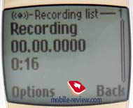 IrDa. Activation and deactivation of IrDa. Bluetooth. This function is rather unusual. According to Nokia, the phone is comparable with Bluetooth accessories (for example, headsets) at the range up to 10 meters. Unfortunately, a headset form Nokia is unavailable, so we tested this function with a headset from Ericsson. We activate this headset and select Accessories search in the menu. The phone finds it rather quickly and offers us to connect. We agree. The connection is setup, but all disappointing will be further. This headset is operated at the range of 5 meters. I could walk and receive/reject calls. It is very convenient. All troubles began when I switched off the headset and after 2 minutes tried to turn it on again. The phone couldn’t find it, though I turned off the headset as accessory. Further attempts were also unsuccessful. At last, I removed the battery from the phone and then re-installed it, after that the headset was connected. In our opnion, it was mostlikey the problems of software. By the way, power consumption in Bluetooth-mode is higher. In case of 30 minutes of talking, the phone operates about 4 days. Extra. A voice memo, which enables to record up to 3 minutes of talking, is kept here. There are limitations of records number. You can listen to special records, give names to them and delete them. It’s very easy. Press twice left soft key to start recording in the talking mode and in the end – one pressure to cancel recording.