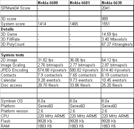 Since the processor is the same (it turned to be, the core version remained the same - Symbian OS 8.0a), the productivity didn't change as compared to the Nokia 6680, just have a look at the SPMark04 test result table (like for the Nokia 6680 the 3D test doesn't work in the package). The Nokia 6681 is always a bit in advance; the gap is 5-10 percent.