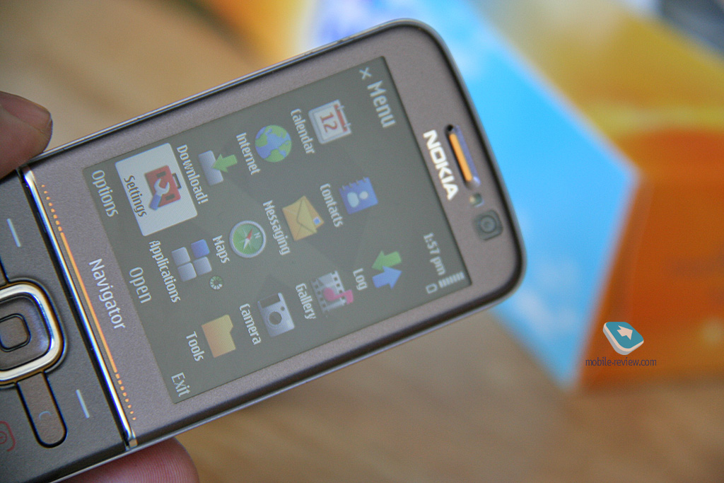Этот аппарат является одним из первых, где используются темы, аналогичные платформе S40. Так же, как и в Nokia 6700 Classic, мы видим обезьянку, бегающую за бананами, аквариум и другие темы. В будущем темы между двумя платформами станут универсальными. И это нормально. Третья версия Maps будет впервые представлена и предустановлена именно на Nokia 6710 Navigator. У нас есть описание предварительной, бета-версии программы, прочитайте его, пожалуйста.