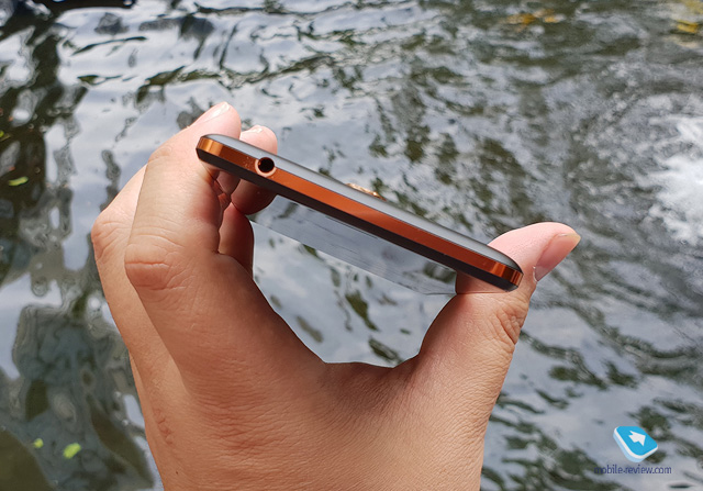 За счет полной ламинации экрана вы не видите, где заканчивается дисплей и начинается его окантовка, это создает впечатление безграничности, как на флагманах от той же Samsung. Визуально играет роль и 2.5D стекло, которое прикрывает дисплей. На ощупь край экрана легко ощущается за счет медного канта, он не острый, просто ребро, которое чувствует палец. Датчик отпечатка вынесли на заднюю поверхность, не глядя разблокировать аппарат не представляет сложности.
