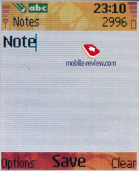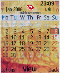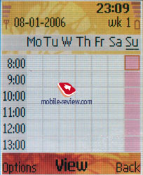FM-radio. The possibilities are standard for the devices by Nokia, there is an automatic and manual adjustment of FM-channels and a possibility to rename them. A handsfree headset is included into a standard kit, you may use it to listen to the radio and a loud speaker mode may be set then all around will be able to do it also (the headset serves as an antenna and that's why it has to be turned on). The quality of realization is rather high and rouses no cavils. Organizer. You may keep from 100 to 250 entries in the memory and everything depends on their length, there is an automatic erasing of the old entries (by the time characteristic). There is a month and week view of the calendar, the last view has a division into hours, there is a quick switch to an entered date. There is a possibility to enter up to 5 different events (meeting, call, birthday, reminder, memo). A notification may be assigned to an event, they may be recurrent.