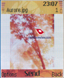 The model is equipped with a TFT screen showing 65K colours with the resolution of 128x160 pixels (29x36 mm). Applying modern criteria, we see the screen is standard for low-end models with colour screens or middle class models. No vivid colours and crystal-clear image. Comparing such screen with Nokia 6230i, we notice it loses despairingly despite bigger size. It is readable in the sun, and no serious problems appear.
