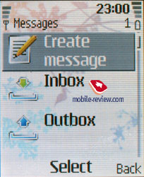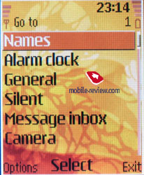 Joystick deviations to various directions call this or that function fast, this really eases dealing with the phone. Any function can be bound to the left soft-key (select from a certain list), or you can make a list of the most frequently used menu items. Before discussing functions separately, we should emphasize memory distribution. Totally the bank of memory forms 2.8 MB (about 1200 KB are available from the very beginning).