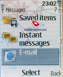 The company thinks that MMS may be a fully functional substitute for EMS. And really, the technology gets everyday and even more interesting messages containing photos, color images, melodies and so on may be created with its help. Every message may be up to 100 KB in size. The realization of MMS is well done in the device and there are no any problems. The device has an integrated mail client working with POP3/SMTP protocols. The capabilities of the client are very poor, though attached pictures and video from the main phone memory are allowed. Also a Flash message function appeared in the phone, that means you may send a message that will be displayed on the screen of the addressee's device but not saved in the memory. The same function is available from any phone with a help of codes and here it is realized with the help of a program. Audio Message is a kind of MMS, but here you can only attach a dictaphone record not longer than 2 minutes 5 seconds primordially. Other differences are absent. Instant Messaging was added to a Message item. The settings are quite clear, I think. Call lists. There are three lists in the phone - received, dialed and missed. Every list may contain up to 20 entries, and conveniently the date and time of the call are displayed in the list. Pressing the Call button in the standby mode brings up the list of the last dialed numbers.