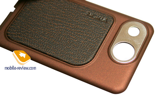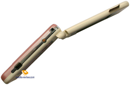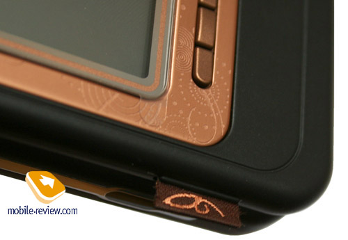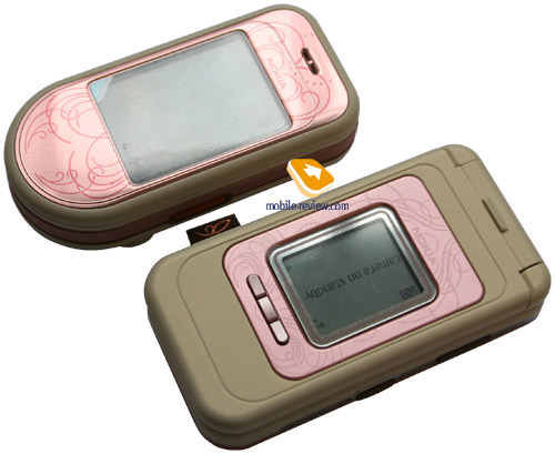 And the last element of the design that emerged on the market following Nokia’s example is leather-covered framings (in Nokia 7200 the coating was made of cloth and thus was exposed to wear and tear). The handset’s rear houses framings made of durable scratch-resistant leather. On pink-colored 7390 they are patterned, while the brown phone features only leather texture. These framings are not only for show – they prevent the device from slipping on inclined surfaces. Undoubtedly, leather is wearing thin with time, though I doubt that will happed to Nokia 7390 sooner than in a year’s time – here the leather is truly scratch-resistant (we deliberately tested that feature of the 7390).