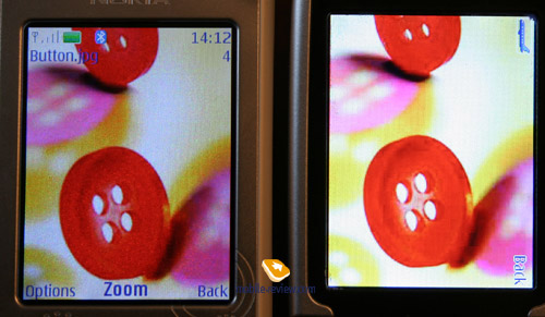 Flipping the handset open reveals a screen similar to that of Nokia 6131 with a diagonal of 2.2 inches and physical size of 33x46 mm (resolution 240õ320 pixels). The display can hold up to 8 text (biggest possible font size) and 3 service lines, but unlike Nokia 6131 there is something wrong with brightness – the screens looks dim, though one glance worths many words. Video, comparison of screens, some functions of the device (wmv, 8.7 Mb)>>>