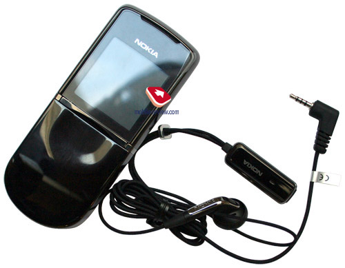 Интерес представляет Bluetooth-гарнитура BH-801, она выпущена специально для данной модели телефона и поставляется пока только в комплекте с ним. Из названия следует, что этот аксессуар является производным от BH-800, так оно и есть, но по форм-фактору, креплению, да и начинке она похожа также на BH-700 (это упрощенный по материалам вариант этой гарнитуры). Облик гарнитуры создавался максимально перекликающимся с Nokia 8800 Sirocco Edition, отсюда комбинация белого металла и черной лакированной, а также матовой поверхности. Гарнитура выпускается только в одном цвете. Дужка может быть установлена, но можно использовать гарнитуру и без нее. Обзор BH-700 вы можете прочитать на нашем сайте вот здесь.