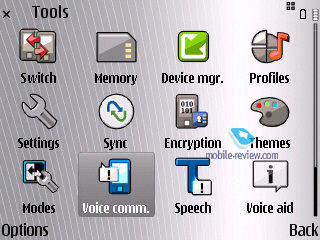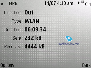 Back to the table of contents >>> MemoryThe device comes equipped with 128 Mb of RAM, after first launch you will get around 70 Mb of free memory at your disposal, which is enough for running a dozen applications and browsing “heavy” web-pages – the word “slow-down” is definitely not in the E71’s vocabulary. The user almost has 110 Mb of storage available, where any data can be stored. The E71 deals with microSD memory cards (hot-swappable), the phone comes packaged with a 2Gb unit. There are no restrictions as far as memory card’s size is concerned – our handset easily identified a 8Gb card. Back to the table of contents >>> PerformanceThanks to its, beefed up memory and a faster CPU (ARM11 running at 369 Mhz, against the E61i’s ARM9 and its 220 Mhz), the E71’s performance has almost doubled compared to the E61i. You can literally soar through all applications and menusalso the handset can have more applications running in the background. ![]() ![]() ![]() ![]() Back to the table of contents >>> USB, BluetoothUSB. Using the USB settings you can choose one of the following modes: