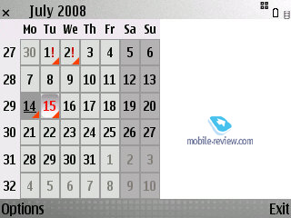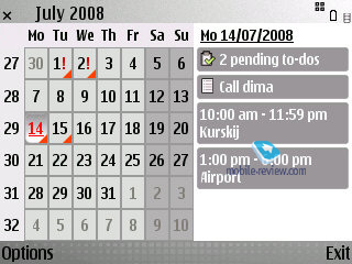 The maker doesn’t provide the real image resolutions, so we take this duty in our own hands. The following resolutions are utilized in the abovementioned modes: 2048x1536, 1600x1200, 1024x768, 640x480 pixels. The picture size averages 1 Mb, 600-700 Kb, 250-300 Kb and 75-100 Kb respectively. You can’t adjust the picture quality settings with the E71. The handset utilizes the digital zoom feature topping out at x20, moreover, there are “normal” and “enhanced” zoom – the latter allows reaching the maximum magnification, yet some artifacts slip into your pictures. When using the standard digital zoom, though, these artifacts are not all that discernible. And since you can perform just the same zoom-in in any graphics editor, using it while shooting is probably not the best idea. The shooting modes comprise a user-defined mode, auto and macro. Other options include portrait, landscape, night, night portrait, sport. portrait, landscape, night, night portrait, sport. The flash can be set to trigger automatically, turned off, or work in the red-eye reduction mode. The self-timer can be programmed to go off in 2, 10 and 20 seconds. The handset can take snaps in rapid successions (three at a time), which may come in handy should you work with fast moving objects. The function is intended to be Sony Ericsson’s Best Pic counterpart, yet as it stands now, it offers less flexibility. Exposure compensation – this feature is interesting in some specific environments, when it will provide for better and sharper shots. It can be modified on a -2 - +2 scale with a 0.5 step. White balance – Auto, Sunny, Cloudy, Incandescent, Fluorescent. Overlays available are Sepia, Black&White, Negative. The ISO settings are set to Auto by default, while other options may be selected manually; much like some cameras, here the maker allows choosing ranges, rather than specific ISO values. In other words, when you choose the Low ISO setup, it includes a range of settings from 60 to 200 etc. This is all another step towards the mass market, an attempt to isolate the user from all technical nuances. Video recording. When recording video with E71, there are considerably fewer settings, than in the still image mode. There is a software image stabilizer that was first introduced in the Nokia N80. You can adjust the white balance, choosing from Automatic, Sun, Cloudy, Incandescent, Fluorescent. The overlay pool includes Sepia, Black&White, Negative. There are only two shooting modes – auto or night mode. Maximum resolution – 320x240 pixels (mpeg4), you can also mute sound, although there is no way you can adjust the E71’s FPS, which is locked at 15. The handset allows recording videos until you run out of free memory. Back to the table of contents >>> Software departmentThe ESeries devices have always been worlds apart from other S60-powered devices in the way of software. Some apps and options that were tested on these phones in the first place are now becoming par for the course in the rest of the company’s portfolio, but some still remain the trademark features of the ESeries. This way, the Nokia E71 sports a unique phonebook, calendar and some other features that are very different from those generic applications built into S60 3rd edition FP1. Let’s see what new feats and abilities the E71 brings to the table.