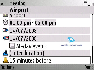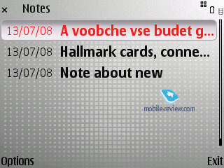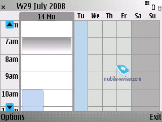 The desktop mode has been revamped a little – now at the bottom there are three icons standing for missed calls, messages and voice mail. If there are no events at hand, the corresponding icon will vanish. Clicking on each thumbnail will make a pop-up with extra information appear on the screen. Mode. The E71 is the first Eseries-branded device ever to boast the Mode functionality. In a nutshell, it’s a mobile version of the latest PC craze – virtual desktops. That is, you make up a couple of screens, where various themes, pictures, applications, plug-ins and other essentials are housed/used. And then you can swap between them in one touch, so that it’s always easy to jump between your setup for work with mail and notifications brought up on the main screen and the home setup with a different theme applied (without your company’s logo or colors) and player controls lined up on the screen instead of email notifications. It takes the E71 around 6-7 seconds to jump between modes. ![]() ![]() Phonebook. While at the standby screen you can type in any letter from the thumbboard and the phone will instantly look-up all contacts in the phonebook that have with this letter in either first or last names. Unfortunately, this kind of search works only for contacts in English (even in localized phones). Contact groups have been given a major boost too – now you can submit a number for voice conferences, a password and also a PIN-code. Enterprise users, who use conference calls a lot, will surely appreciate this new ability. Plus you can select a ring tone for any contact group in the E71 (but not a picture, regrettably). ![]() ![]() ![]() ![]() ![]() ![]() ![]() ![]() ![]() ![]() ![]() With groups you can also make use of “Call to many” feature, which will allow the E71 to set up a conference call on its own; on top of that the handset allows for bulk mailing. Regrettably, there are no other views available for the phonebook – for instance, you can’t make the E71 show contacts coupled with at least one phone number. At the same time it allows calling up a drop-out menu by selecting a contact and pressing the navigation button right – it’ll let you make a call or send a message without leaving the phonebook menu. On top of that this list is context-sensitive, meaning that its options will change depending on what types of phone numbers are available for the contact in question. The roster of fields you get to fill when creating or editing a contact hasn’t changed much, but the E71 manages to offer a better address field setup and also BlackBerry PIN as a default option. ![]() ![]() ![]() ![]() ![]() ![]() ![]() ![]() ![]() ![]() ![]() ![]() ![]() ![]() ![]() ![]() ![]() ![]() ![]() ![]() ![]() Calendar. The Calendar application hasn’t changed a bit since its last iteration; in fact the only thing that’s different is its layout, when the E71 shows both the calendar and events scheduled for the current day. In case there are too many entries, the E71 will show only their total number with no extra information. When using the weekly view of calendar, all events are displayed just like in MS Outlook, plus there are some pop-up tips scattered across the screen. All in all, while pleasant, none of these changes are groundbreaking. ![]() ![]() ![]() ![]() ![]() ![]() ![]() ![]() ![]() ![]() ![]() ![]() ![]() ![]() ![]() ![]() ![]() Voice Aid. While this feature’s name probably doesn’t say much, I find it pretty interesting and useful. For instance, it will allow you to handle the E71 when driving and so that you have only one free hand – simply assign this feat to one of the shortcut buttons, and there you go, you can either make the handset read out the call log, or pick an entry in the phonebook without even looking at it. In the latter case all entries get grouped up by the first letter of their names – by pressing the navi-key left or right you will switch between these categories (ABC, DEF, etc) and punching it up and down will scroll through the list, while the phone will be reading out all contacts you hover upon. ![]() Message Reader is available with other S60 devices too – this application does pretty much what its name says, it reads messages aloud. Clock – using this feature you will make the E71 tell you what time it is now. Dialer – this application has been carried over from previous ESeries devices and basically it stems from handsfree car-kits – it allows you to scroll through a list with digits while the handset is reading them out aloud, so that you can dial a number without looking at the display at all. Voice dial. There has been a lot of fuss around the E71’s official description on Nokia’s site, specifically around this line - Speaker dependent and speaker independent voice dialing (SDND, SIND). Someone suggested that the handset featured recordable voice tags, just like on old phones. But I have to disappoint him and everyone who believed in this – the E61 runs with the system that can adjust to your voice and keeps improving on the go. Although some think this intelligent system doesn’t really work (and the truth is, it almost never finds the right name at first), in fact it takes the E71 around a week to come to grips with your voice and pronunciation and reduce the number of errors. Data encyption. Another change of note – the E71’s ability to encrypt data both on the memory card (microSD of any size) and the handset’s internal memory. And this saves you a whole lot of trouble should you smartphone end up in some villain's hands, who does know how to break a standard password. On the other hand, if you forget the password yourself, you won’t be able to recover the data, which will be a pity, but all systems of this kind have this glitch. ![]() ![]() Office tools. Enterprise users will surely appreciate the E71’s Intranet application, which comprises the settings of VPN-client. As far as office tools go, the E71 is no 