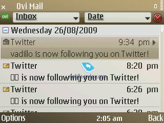 Back to the table of contents >>> Mail clientThe phone utilizes Nokia Mail version 2.0 client, identical to the one found in the E75, although the major difference highlighted by Nokia is html support in letters. But in reality there are other details that are worth talking about. The mail wizard will take your though all necessary steps required to setup a new account. In case you use a well-known service, such as Gmail or Yahoo, all you'll need to do is enter your mail address and password - and that's it, you're all set. When connected to your mail box, the E72 shows a matching splash screen as well as a special icon in the top right. Unfortunately, there are no other indicators in this client (such as the number of letters or delivery process), nor does it allow the user to upload only selected entries. But while it may seem ascetic, this mail client is still superior to that found in other Nokia-branded phones. The default feature pack is nothing to write home about. One thing of note, though, is that all links now have the Play icon next to them, allowing the user to open them in a new window or use Intranet. ![]() ![]() ![]() ![]() ![]() ![]() But the most interesting thing about it is how this client handles html. These letters get opened in a new window, using the browser's engine and that's the point where all the trouble with character encodings (other than Unicode) being. For example the standby screen shows latest letters and first lines picked out of them. Letters in Russian, as a rule, are displayed correctly, but there is a chance that it'll get twisted in the html view and vice versa. Unfortunately Nokia haven't done their homework and haven't solved their old localization problems. Many applications and features suffer from poor translation and character encoding issues. For example this mail client doesn't allow to pick character encoding, which is a huge drawback for many regions utilizing non-Latin alphabets. Online mail services work in an even more twisted way on the E72 - for example, if you open a letter in html via Gmail, you won't notice anything out of the ordinary, same goes for previewing it in the mail client; but as soon as you open this letter in the browser as html, the character encoding will crumple. The QWERTY-orientation of the E72's mail client also manifests in the form of shortcuts on the keyboard. But while they are very handy, other apps found in the E72 lack this feature, which is a pity. For example, one would expect to find them in the organizer, but there are none. ![]() ![]() ![]() ![]() ![]() ![]() ![]() ![]() ![]() ![]() ![]() ![]() ![]() ![]() ![]() ![]() ![]() ![]() ![]() ![]() The mail client supports POP3/IMAP, remote synchronization and other par-for-the-course features. But unfortunately, the above-mentioned drawbacks will probably make you not want to employ it as you main mail client, especially if you're a sophisticated user. Had it not been for all the hype Nokia created around this client, I wouldn't have anything against it, but in all honestly, they should have come up with something more interesting for enterprise users. Apart from that the E72 boats Push-esque functionality when the service automatically checks for new mail and sends it to your phone - while one could argue that the way it's implemented in the E72 is far from ideal, the ordinary consumer will be more than happy with this feat. ![]() ![]() ![]() ![]() ![]() ![]() ![]() ![]() ![]() Desktop. The desktop mode has been revamped a little - now at the bottom there are three icons standing for missed calls, messages and voice mail. If there are no events at hand, the corresponding icon will vanish. Clicking on each thumbnail will make a pop-up with extra information appear on the screen. Compared to the E71, the setup found in the E72 is somewhat different: for example, it doesn't show any info from SMS other than sender's name or number. There is also an option to tack up to 14 apps on to the desktop, which is extremely handy - add two Mode screens and the number of applications you can have at your fingertips gets even bigger Mode. In a nutshell, it's a mobile version of the latest PC craze - virtual desktops. That is, you make up a couple of screens, where various themes, pictures, applications, plug-ins and other essentials are housed/used. And then you can swap between them in one touch, so that it's always easy to jump between your setup for work with mail and notifications brought up on the main screen and the home setup with a different theme applied (without your company's logo or colors) and player controls lined up on the screen instead of email notifications. It takes the E72 around 6-7 seconds to jump between modes. ![]() ![]() ![]() ![]() ![]() ![]() ![]() ![]() ![]() Phonebook. While at the standby screen you can type in any letter from the thumbboard and the phone will instantly look-up all contacts in the phonebook that have with this letter in either first or last names. The same method works in the contact list too. Contact groups have been given a major boost too - now you can submit a number for voice conferences, a password and also a PIN-code. Enterprise users, who use conference calls a lot, will surely appreciate this new ability. Plus you can select a ring tone for any contact group in the E72 (but not a picture, regrettably). ![]() ![]() ![]() ![]() ![]() ![]() ![]() ![]() ![]() ![]() ![]() With groups you can also make use of "Call to many" feature, which will allow the E72 to set up a conference call on its own; on top of that the handset allows for bulk mailing. Regrettably, there are no other views available for the phonebook - for instance, you can't make the E72 show contacts coupled with at least one phone number. At the same time it allows calling up a drop-out menu by selecting a contact and pressing the navigation button right - it'll let you make a call or send a message without leaving the phonebook menu. On top of that this l