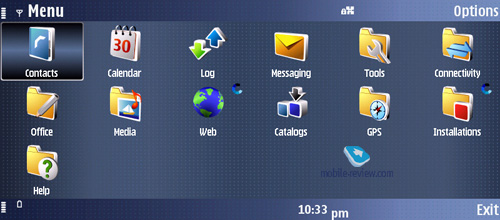 Quick Office. Probably, the most crucial change that many don’t pay necessary attention to, which is unfair. Unlike the entire range of S80 products, for S60 they have decided on using Quick Office (my eyes won’t go round if Nokia buys out this developer) as the default office software kit. Most products get a free version installed, that does not allow the users to edit office documents (for example, Nokia N95 is one of them), however Nokia E90 hasn’t had this ability cut. Although this software isn’t idea, it delivers the same capabilities as Windows Mobile. ZIP. Another well-known utility for handing archives, creating compressed files etc. Barcode Reader. This application can be installed on just about any S60-based smartphone; it allows reading codes from products packing. Nevertheless finds little application in real-life, on top of that, its quality leaves much to be desired. WEB-browser. Honestly, I don’t want to bother you with another description of what operates as standard browser version 2.0. Saving for the display that makes navigation a much easier affair and allows you to view most resources without having to scroll horizontally, it hasn’t undergone any makeovers. A comprehensive review of the browser can be found here Built-in mail client. The E90 retains the same client as all other Eseries devices, at that all attachments are opened in Quick Office, Flash Player, or the built-in browser. In fact, there are no limits set on size of sent or received file. Regrettably, today, when using Exchange Server, there is no way to create own hierarchy of folders in the client, but they promise to add this feature in future. The handset also boats support for Intellisync 8.0, which brings its functionality to the level of Windows Mobile devices, however, special tweaking and tuning is required. Also, for Nokia E90 there is a BlackBerry-client available. Wrapping it all up, in terms of email, today it is one of Nokia’s best offerings, especially in view of a full QWERTY-keyboard.