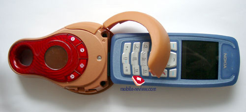 Images from camera can be used for creation of MMS-messages (after transferring to phone). You should remember the images with Photo quality are not suitable for such purpose. Images with Higher quality are not available for MMS-messages in Nokia 7210/6610. The quality of made pictures is rather poor. You can make sure of that by viewing this example. This is one of the best images, others were worse. As a whole, the quality of images on phone’s screen is not very high. The device costs about 90$, it can’t be named a good purchase. The real cost of the camera shouldn’t exceed 30-40$, but even in this case it is rather expensive. Judge for yourself, if the phone costs about 150-170$ it is not logical to pay up to a third of its price for the camera with minimum set of functions. You can buy separate digital camera with such shooting quality, compact dimensions and low price (20-25$). The only defect of such cameras will be the impossibility of transferring images to phone. The massiveness of the camera is a shortcoming too. Look at the phone with connected camera.