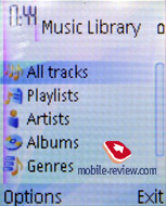 Интерфейс внешнего экрана – Cover UIКомпания Nokia буквально с первых раскладушек старалась использовать внешний экран по максимальной программе, выводить на него все, что только возможно. В Nokia N76, аналогично Nokia 6290, размер внешнего экрана – 22х28 мм (1.36”), а разрешение – 128х160 точек. Еще несколько лет назад подобными экранами могли похвастать многие обычные аппараты, этот дисплей чуть меньше по физическим размерам, но не по разрешению. Благодаря этому стало возможным реализовать так называемый Cover User Interface, одно из сильнейших решений от Nokia в области телефонов последнего времени. Экран отображает до 262 тыс. цветов, выполнен по TFT-технологии, что позволяет картинке оставаться различимой на солнечном свете. На экране помещается до 6 текстовых строк и до двух служебных. Давайте разберемся, что же такого особенного позволил внешний экран обычному пользователю Nokia N76, чтобы называть Cover UI сильным решением? В режиме ожидания на экране можно видеть все служебные индикаторы, время, а также три иконки, выполняющие роль обозначений для внешних клавиш (их три, соответственно). Правая клавиша отвечает за запуск радио, уже в этом режиме левой и правой клавишей можно переключать каналы. Если нажать центральную клавишу в режиме ожидания, то запустится плеер, он начнет проигрывать последнюю мелодию. Левой клавишей можно выбрать списки мелодий, представленные стандартным разбиением по исполнителю, жанру, списку файлов, наиболее часто используемым и так далее. Передвижение по списку осуществляется с помощью боковой клавиши регулировки громкости, все понятно и просто.