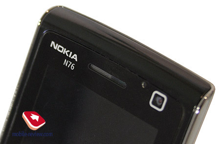 Внутренний экран аналогичен таковому в Nokia N75, его диагональ – 2.4 дюйма, в то время как в Nokia 6290 он немного меньше – 2.2 дюйма. На мой взгляд, экран в Nokia N76 выглядит ярче, немного насыщеннее, интереснее. Его разрешение – 240х320 точек, он отображает до 16 миллионов цветов, хорошо читается и на солнце. Над внутренним дисплеем располагается динамик, фронтальная камера для видеозвонков в сетях третьего поколения, а также датчик освещения.