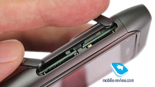On the left side, you can find a naked microUSB port, there is no cover there. Two slots, for the memory and SIM card, are located above it. They have covers that are attached to the casing and can be torn off eventually, their design being different from that used in other Nokia phones. The covers have only one stem and henceforth should be handled with care.