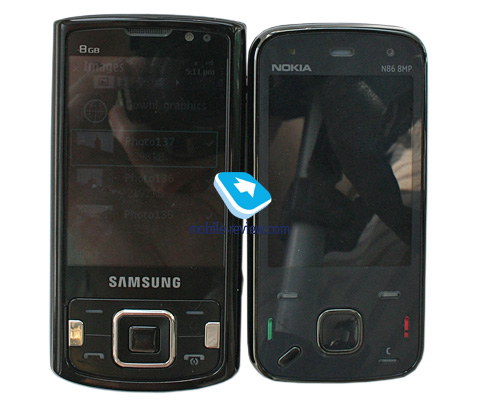 PositioningOriginally Nokia were planning to call this phone "Nokia N85 8MP", similarly to their best-selling N95 and its 8Gb version. Back at MWC 2009, all samples had the "N85 8MP" labels on their casings, however the next day they boasted the model's present name. Why did Nokia change it? As I see it, they were worried by the negative feedback on the original phone's build quality they had received from users. While our review claimed that the unit we got from Nokia was more than sturdy, most commercially available phones suffered from squeaky plastic and other similar problems. However, I'm not going to chastise myself, since the review of our unit didn't have any inaccuracies whatsoever. But with this in mind, even though we had a chance to run the N86 through its paces much earlier, we opted to wait for retail units to arrive, where nothing was subject to change. At the same time, to all those who are seriously considering the N86 I strongly recommend to playing around with it before purchase - it's always good to get a feel forhow the phone is built for yourself. ![]() Essentially, the Nokia N86 is the refurbished version of the N85 both in terms of build quality and camera. All things considered, it's Nokia's imaging-savvy flagship, although the company doesn't believe that the megapixel race is worth getting into, and rather prefers to focus on image processing algorithms and lens quality. So, on balance, for Nokia the release of an 8MP cameraphone is rather a forced response to the recent activity of Samsung, LG and, to a lesser extent, Sony Ericsson. At the same time they have solved the problem with the N85's lifecycle - the new phone comes preinstalled with 8 Gb of storage, revamped camera, but its price tag hasn't changed. In fact, the original phone retails for mere 45-50 Euros less, which means two things, Firstly, Nokia have made it clear that they are not going to play around, launching their brand-new N86 at a very low price point. And secondly, they see no reason to withdraw the N85 from the market right now, allowing it to stick around for a couple of months more instead. In my opinion, the Nokia N86 should be viewed more as an improved version of the original phone with a handful of new features thrown in for good measure. On the other hand, the N86 packs in enough enhancements to tip the scales not in the favor of the Nokia N85. Back to the table of contents >>> Design, Size, ControlsStyle-wise, there is little to no difference between the N85 and N86, and in truth, there was no goal to make them feel different. However the N86's outfit has been changed big time, as it sports new buttons, fresh casing color and a slightly reworked controls layout. But at the end of the day, I don't think that those who came to like the original model won't become fond of the newcomer as well - they might seem different, but at the core not much has changed. ![]() ![]() Although only when you put them head to head, do you realize that the Nokia N86 appears to be a tiny bit wider; and at first you might even think that it's due to the new casing color. But a couple of simple measurements will tell you that at 103.4x51.4x16.5 mm, the N86 is indeed wider than the N85 (103x50x16 mm). On top of that, it has become substantially heavier (149 g, against the N85's 128 g), although its weight won't bother you at all. Nokia N86 vs Nokia N85: ![]() ![]() ![]() ![]() ![]() ![]() In general, the N86's style is very similar to that of the Nokia N97, both in terms of plastic quality and casing construction. That is, its back cover is designed as a sold plastic slab, which eliminates even the slightest chance that it'll loosen up with time. Plus its matte plastic feels great in the hand; although going back to the N86's increased weight, the main contributing factor here is not its new battery cover, but rather the metal display frame. Nokia N86 vs Samsung INNO8 i8510: ![]() ![]() ![]() ![]() ![]() ![]() Nokia N86 vs Nokia N97: ![]() ![]() ![]() ![]() ![]() While initially the N86 was showcased in two colors - dark-grey and white, all retail units will come only in Indigo Black (the official name for the former trim). Although in truth, I like its white variation too, so maybe they'll release it at some point in time. Actually, one of the most possible reasons why they have opted to keep the white edition off the market, to my mind, is that in this outfit the N86 looks very similar to their ultimate flagship device, the N97 (in white), so probably they have thought better of it and decided to avoid needless confusion. But don't put too much stock in this theory, as it fails to explain why the N86's grey version hasn't been altered as well (since it looks more or less like a grey N97). ![]() ![]() Housed on the left-hand side is the keypad lock switch. Beneath the battery cover is the memory card slot; the reason why it's found there is pretty simple - the N86 already comes bundled with 8 Gb of onboard memory, so its users probably won't need to swap memory cards too often, if at all. Perched on the top is the power button, 3.5mm audio jack, microUSB socket for chargers and data cables and right next to it - charging indicator. On the right are two loudspeakers, which is a proven setup that we've already come to expect from Nokia-branded phones. Also there is the volume rocker along with a dedicated camera key. Located on the back are the camera lens and LED flash. ![]() Topping the display is the forward-facing VGA camera, along with the ambient light sensor that adjusts the brightness level of display and keypad automatically. Running around the camera lens is so-called kickstand that can be flipped to prop the phone up when you put it on some flat surface. While the N96 was the first phone to enjoy this feature, the new N86 takes the idea one step further, allowing the user to program any application to launch whenever the kickstand is used. Back to the table of contents >>> DisplayMuch like the 
