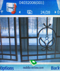 Общего представления альбомов в виде небольших иконок соответствующих им нет, максимум интеграции с графикой, это отображение иконки альбома при проигрывании композиций из него. Графика должна помещаться в той же папке, что и сами песни. Окно проигрывания композиции очень простое – отображается название исполнителя, название песни. Ниже индикатор показывает положение в текущий момент времени, а также длительность песни. Вверху справа отображаются иконки, показывающие в каком режиме, происходит воспроизведение (повтор, случайное воспроизведение). Плеер может играть в фоновом режиме, тогда на экране в режиме ожидания отображается название композиции и текущее время проигрывания. Из дополнительных настроек для звука в аппарате можно отметить баланс каналов, он работает без нареканий. Расширение стереобазы (stereo widening) уменьшает уровень воспроизведения, немного влияет на качество звука, но практически незаметно. Присутствие данного эффекта номинально, впрочем, как и усиление басов (эффект Loudness). В телефоне есть эквалайзеры, каждый восьмидорожечный. Предустановленны такие эквалайзеры как Acoustic, Bass Booster, Hip Hop, Pop, R&B, Rock. Пользователь может создать и свои настройки, новые типы эквалайзеров. Надобности в этом нет, так как работа эквалайзеров вызывает также вопросы, они не улучшают качество звука, а только ухудшают его. Характерная картина, когда на границе диапазонов при применении эквалайзеров начинают выпадать звуки, особенно негативно применение эквалайзеров сказывается на басах. К сожалению, аналогичная картина с дополнительными эффектами характерна не только для Nokia N91, но и для других моделей от Nokia. Эти эффекты просто не работают. Расширения стереобазы, применение Loudness, видеоролик (wmv, 8.18 Мб)