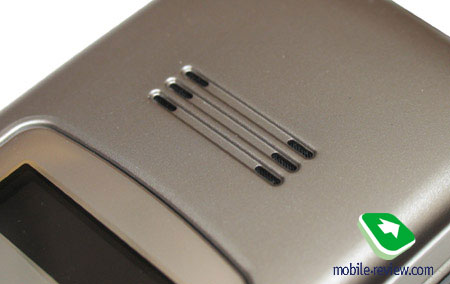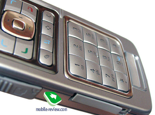 Standard interface connector Pop-Port and slot for charger are found on the left side play. The Pop-Port is covered with a plastic stub, which is easily removed at any moment. miniSD expansion slot, protected with a plastic stub fastened to the casing, is positioned more towards the upper end. A miniSD card may be up to 2 Gb big; even though the handset fully supports hot swap, I wouldn’t recommend changing cards on the go for people, who store on them applications, as well as various media files.