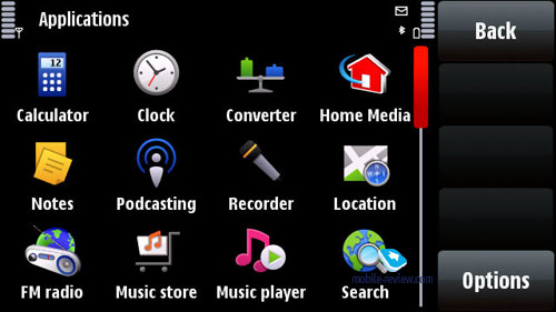 В отличие от Nokia E71 экран в аппарате потребляет больше энергии. Чем чаще вы пользуетесь телефоном, тем быстрее он разряжается. Для тех, кто активно пользуется почтой, смотрит видео, слушает музыку, ходит по сетевым страничкам, а еще и установит виджеты в режиме ожидания, уверенное время работы составит один рабочий день (не сутки, а именно день). В среднем можно рассчитывать на два дня работы, но возможны проблемы в виде севшего к обеду аккумулятора. Модель показалась мне одной из самых прожорливых в плане энергии. С другой стороны, отказ от виджетов с передачей данных резко увеличивает время работы (как минимум процентов на 20-25). ПамятьВ аппарате 128 Мб оперативной памяти, при загрузке пользователю доступно около 70 Мб свободной памяти. Этого достаточно для запуска десятка приложений, а также просмотра «тяжелых» web-страниц, аппарат не знает проблем с этим. Пользователю доступно 32 Гб памяти в самом аппарате, в ней можно хранить любые данные. Карты памяти - microSD, поддерживается их «горячая» замена, в комплекте карты нет. Максимальный объем карт памяти не ограничен, наша карточка на 32 Гб была распознана аппаратом. ПроизводительностьМодель построена на той же аппаратной платформе, что и Nokia 5800, попытки компании создать ее на другом решении столкнулись с затягиванием сроков. Получилось промежуточное решение, с одной стороны, новый музыкальный чип, с другой - старое одночиповое решение, как в Nokia 5800. Скорость работы аппарата в данный момент сравнима с таковой для Nokia 5800 или чуть медленнее в некоторых приложениях. Для виджетов провели оптимизацию, и они буквально летают по экрану, но и только. Во всех остальных разделах аппарата такой скорости не увидишь. USB, Bluetooth, Wi-FiUSB. В USB-настройках можно выбрать один из 4 режимов работы: