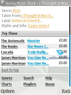 ![]() Музыкальный магазин – доступ к Nokia Music Store, возможно покупать песни, альбомы, загружать их на свое устройство.