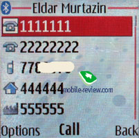 There is no preset users' group in the phone and thus you'll have to create them yourself. A great advantage is the whole number of groups may run up to 25. You can assign a call melody and choose an image for a group. The picture assigned to a contact has more priority and is displayed instead of the image of the group. One user can refer to several groups. You can have a personal melody for a name if assigning this name to a group containing only one subscriber. And finally, users' groups have been organized well. An extra surprise hides in the general name list. Here groups are displayed the same way as usual names but indicated with a special sign. A general search by name works for groups also. This representation would seem uncustomary for the first time and then you'll realize the whole comfort, since you don't need to enter a separate menu item responsible for groups (moreover, it is accessible only from the main menu and using the soft-key you get only a list with no access to the settings).