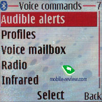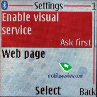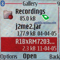 Connectivity. The device can be used a modem, also batch communications are supported (GPRS class 10, EDGE class 10). Connecting to a PC is made in any way you like - IrDA placed on the top, Bluetooth or using a cable. The disadvantage is the lack of any indication of the connection speed (the presence of the EDGE standard is dubious), they say in future a corresponding icon will appear. We have checked 6 devices of Nokia 6230i (from 3.20 to 3.23 software versions) remembering the troubles with Bluetooth the Nokia 6230 had (unstable work). The test was quite easy and consisted of two parts. The first stage supposed transmitting an archived file of 22 MB in size from a PC to Nokia 6230i and then it was unpacked. All the devices committed the procedure with no troubles. The file transmission speed formed about 40-41 KB/s. The second stage was even plainer. We downloaded a clip weighting 65MB from the www.mobile-review.com site via Bluetooth and using a notebook. Under the condition of the EDGE unstable work in Moscow (that is a non-commercial service despite all the announcements) the downloading time was not a figure taken into consideration. No phone restarts or Bluetooth incorrect work were noticed in any case. The device supports the following Bluetooth-profiles: Hands-free, Headset, Object push profile, File transfer profile, Dial-up networking profile, Voice Gateway. Bluetooth version is 1.1. What is surprising, the player menu offers to transmit the sound to the headset, which works perfectly (but the sound is mono). We tried to use some stereo headsets but the sound was still mono.