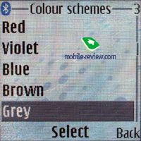 The screen settings allow choosing its color scheme, wallpaper and a screen saver. The screen saver is a picture that is displayed in the standby mode when the backlighting is not active. It is worth choosing one of the preset pictures, they are seen better in this mode than loaded full colour images. You can set the time interval for the screen saver work and then it will be replaced with standard digital clock. For the first time, here you can choose the font-colour for the standby mode. In principal, these options were joined under the name of Themes. And this is the first model to have such a centralized theme changing option.