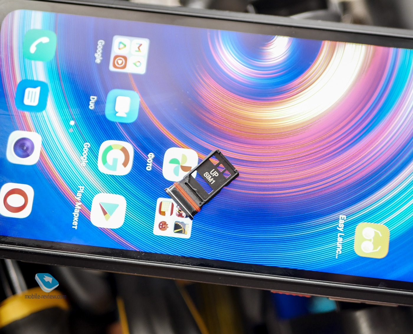 С обратной стороны снизу есть крепление под карабин. Кстати, слот под две сим-карты формата nano находится на правом нижнем боку. Слот поддевается ногтем.