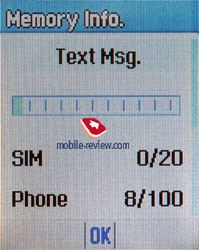 The menu localization is carried out at a mean level, some titles are abbreviated. That looks not good. The phone has 1.7Mb of embedded memory that is dynamically distributed among applications.