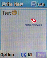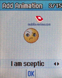 Mere three melodies are available for message alerts and a repetition could be set for every two or five minutes. The MMS editor is lain and clear - you can create several slides. An opportunity to create MS templates is present. An outgoing message can't exceed 100 KB.