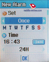 Organizer. Alarm clock. You may set 5 independent alarms and each of them can activate once, daily or from Monday till Friday (till Saturday).